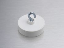 The magnets with a plastic housing are neodymium magnets with an (open) steel hook. There are also ceiling magnets with a (closed) eye. Handy for attaching or hanging signs or advertising applications. These ceiling magnets are available in different sizes and strengths.